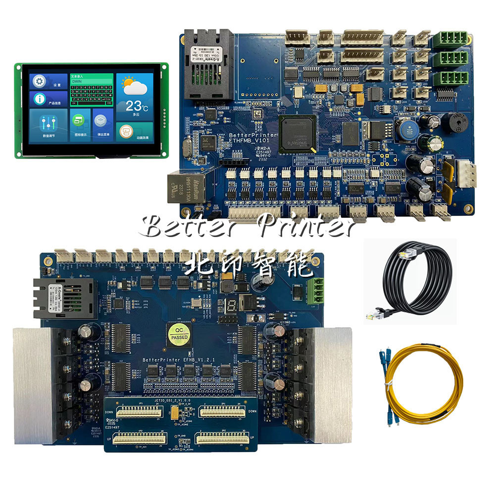 Sistema de control de impresión de inyección de tinta de doble cabeza de red gigabit, modelo de boquilla de aplicación: G5I, cable de red para conectarse a la computadora, transmisión rápida más velocidad.Se dispone de soluciones maduras para la impresión por inyección de tinta de las máquinas fotográficas, impresión UV de tela plana, impresión de transferencia de calor textil, impresión de estampado en caliente con tinta blanca y pulverización directa de dos estaciones.